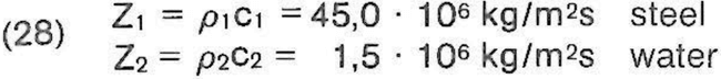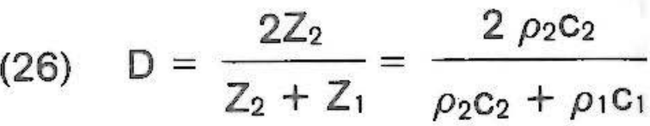 影響反射系數(shù)R和透射系數(shù)D的幅值的主要因素是兩種介質(zhì)的聲阻抗,分別用Z1 = p1c1和Z2 = p2c2表示(見方程式25和26)。相關(guān)的調(diào)查結(jié)果和數(shù)據(jù)可以在表1中找到。