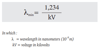 一個電子的能量,帶有電荷e,在電勢V的加速下是(eV),所以電子的能量可以用eV、keV、MeV來表示。這些相同的單位也用于表示X射線光譜線的能量。單個波長的能量是: