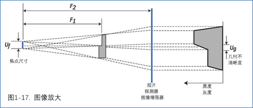如圖1-17所示,將物體靠近這種微焦點X光管,并將膠片或探測器放置在較遠的地方,就可以獲得放大的圖像。因此,任何缺陷也將被放大,但仍然保持足夠的清晰度。