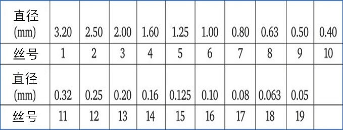 表1-13顯示了符合EN 462-01的四種IQI的絲組合。絲的直徑在表2-13中給出。