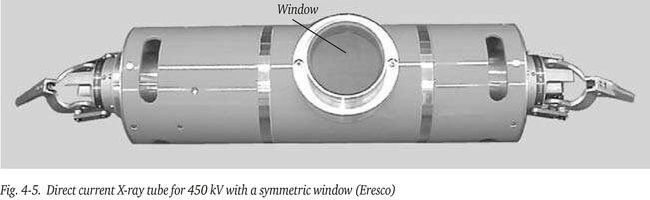 一個300kV的罐式設(shè)備和一個450kV的直流X射線管在尺寸上相似。它們大多數(shù)由頻率為50或60赫茲的主電源供電。在這個頻率下,供應(yīng)電壓可以被轉(zhuǎn)換為更高的電壓。為了確保輸出電壓的穩(wěn)定,接下來需要進行整流。有些設(shè)備的X射線管本身就具有整流功能,這稱為單相整流。如果不進行電壓平滑,那么在每個交流電周期中,電壓會發(fā)生顯著變化。這種周期性和變化很大的高電壓會影響產(chǎn)生的輻射的強度和能譜,詳情請參閱關(guān)于管電壓和管電流部分。